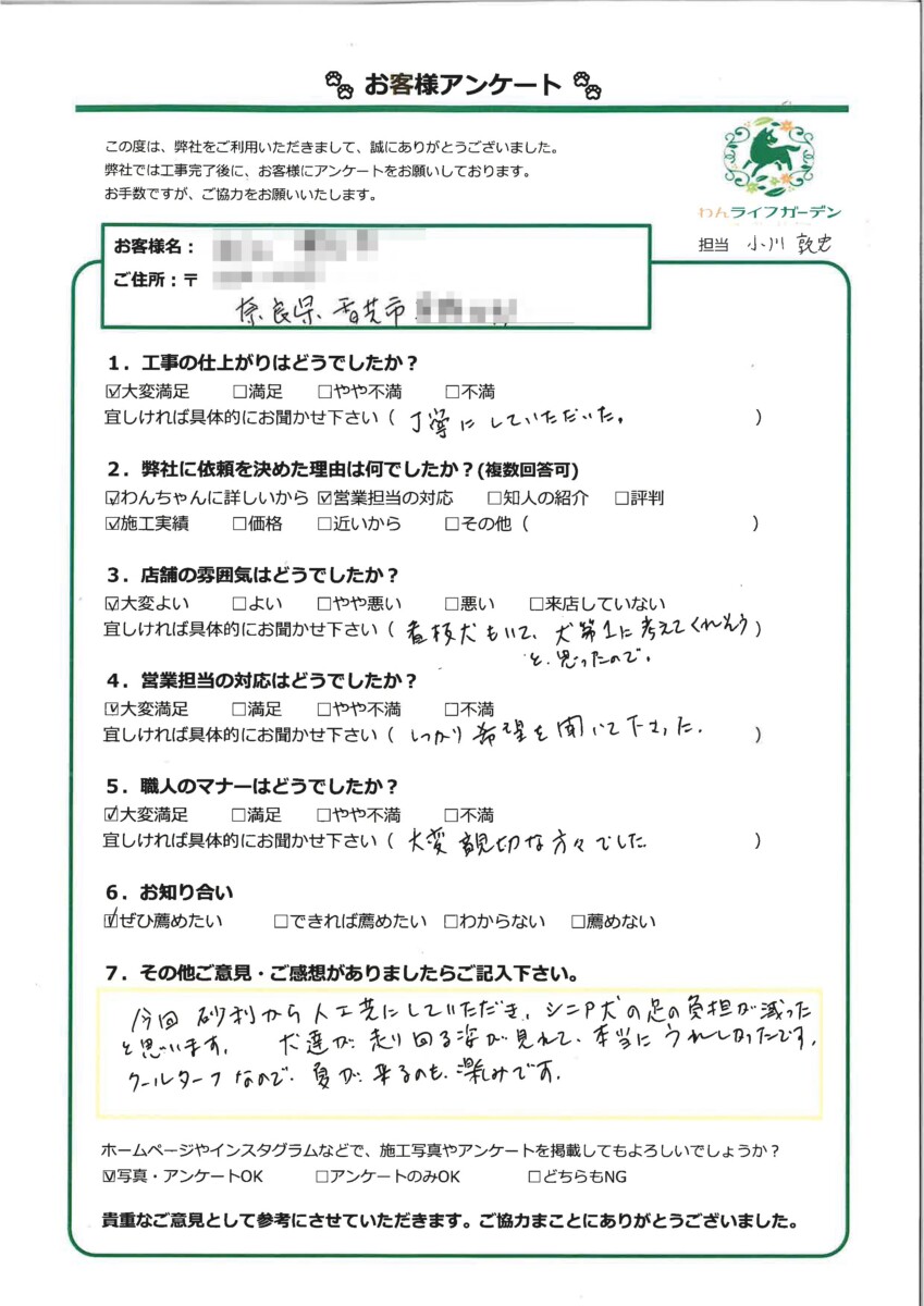 愛犬はもちろん、子供達も楽しく過ごすことができる空間となり、大変嬉しく思っていま