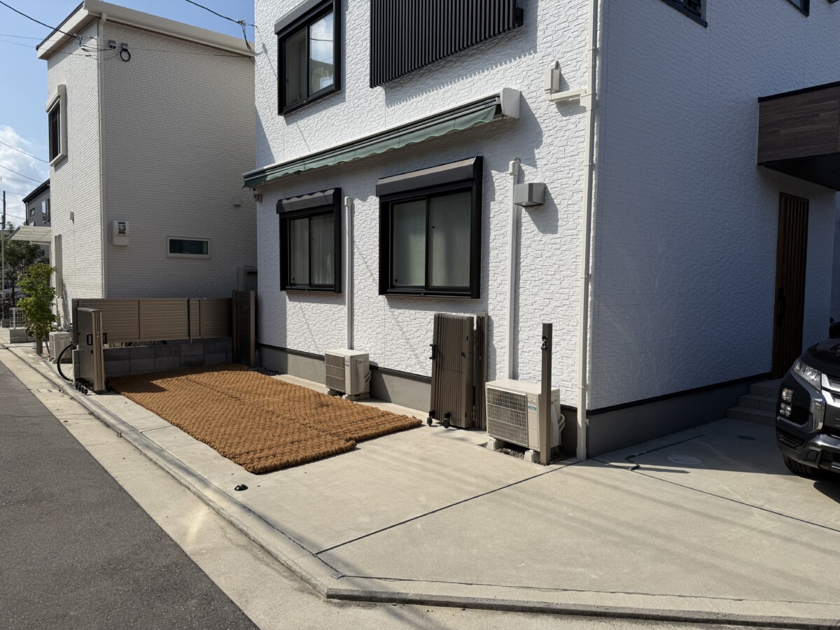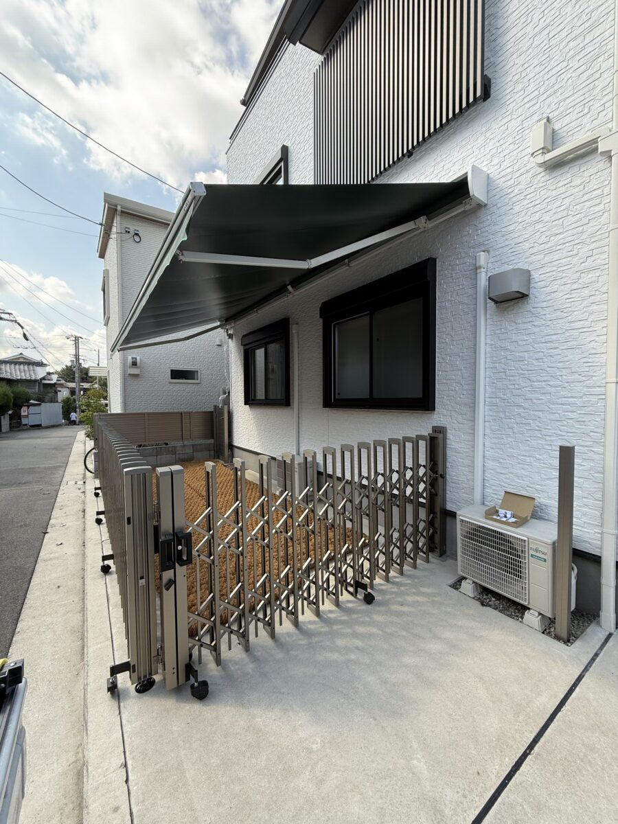 ・愛犬と外で自由に遊べるように。車も駐められるように伸縮門扉で囲いを設置。